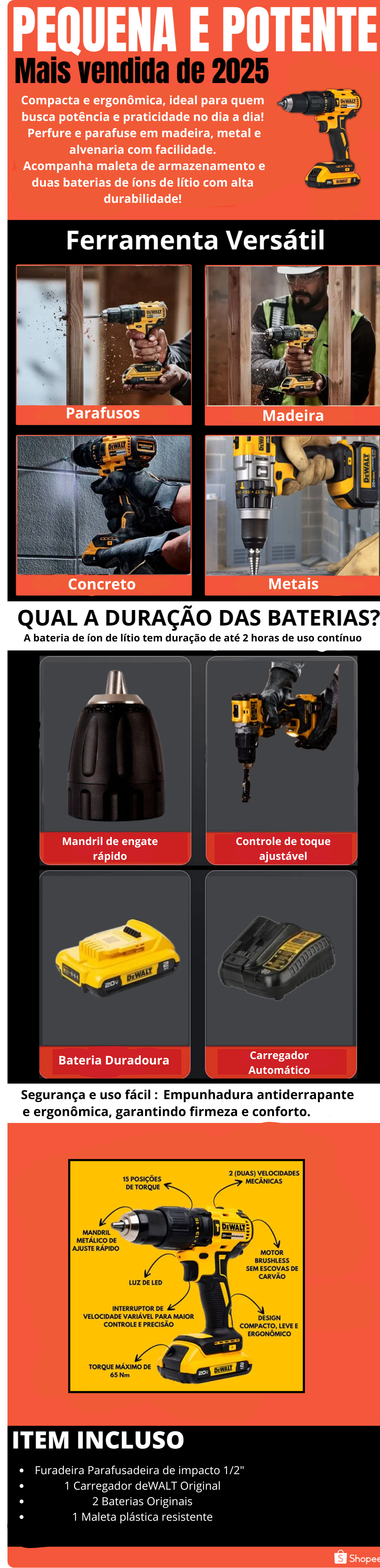 Furadeira Parafusadeira de impacto 1/2" a Bateria 48V Brushless com 2 Baterias